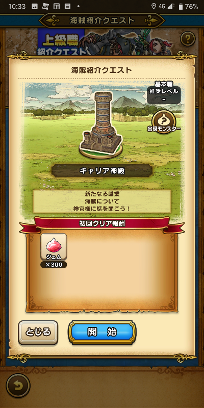 ドラクエウォークの上級職海賊紹介クエストに挑戦しました。