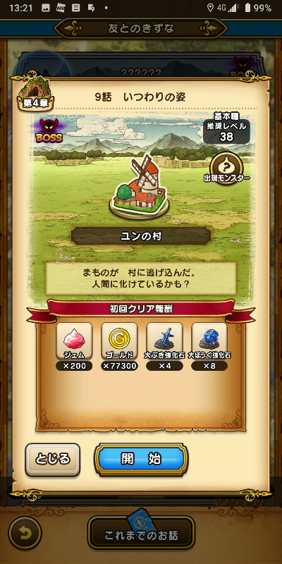 メインストーリー第4章友とのきずな9話「いつわりの姿」に挑戦しましたよ。